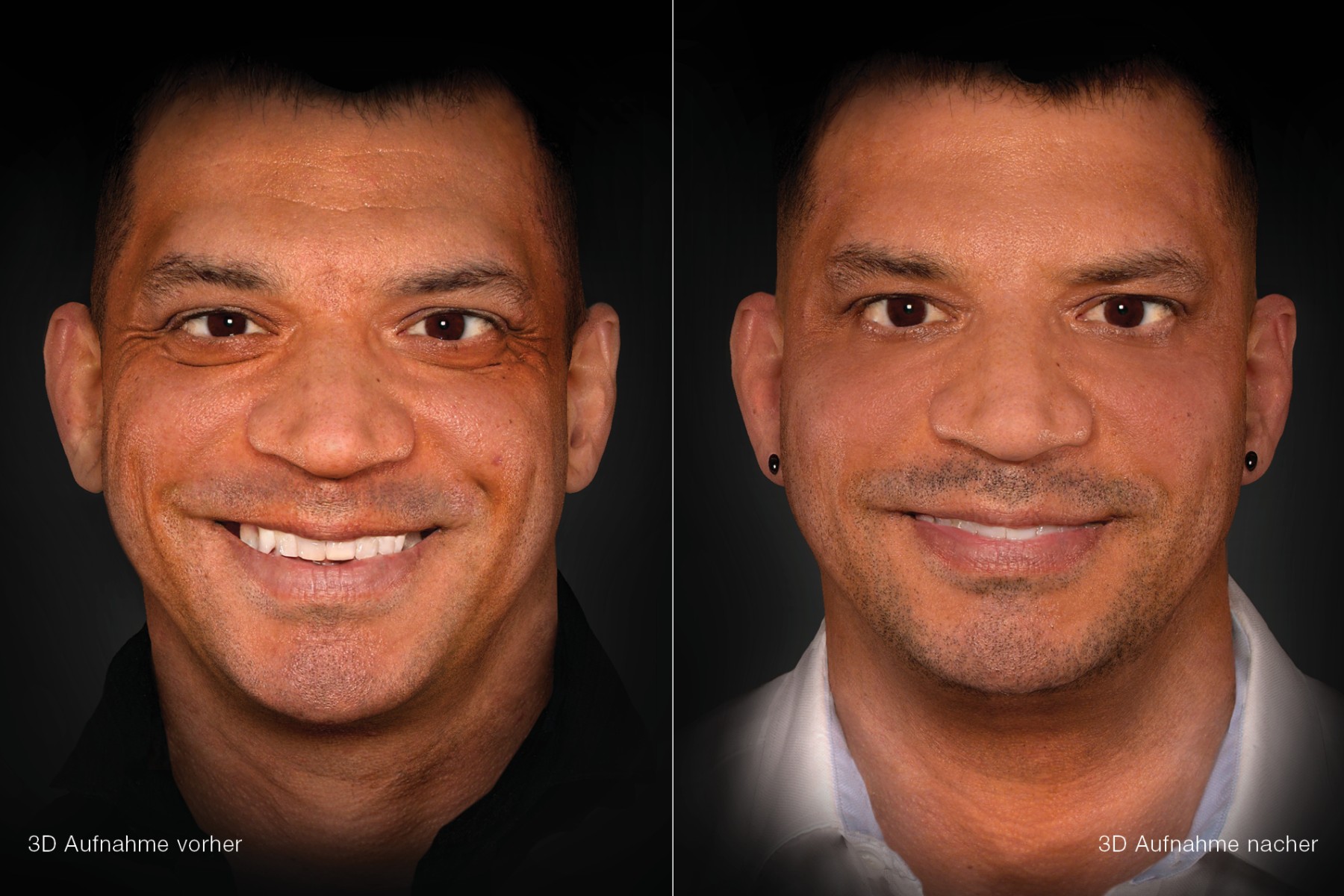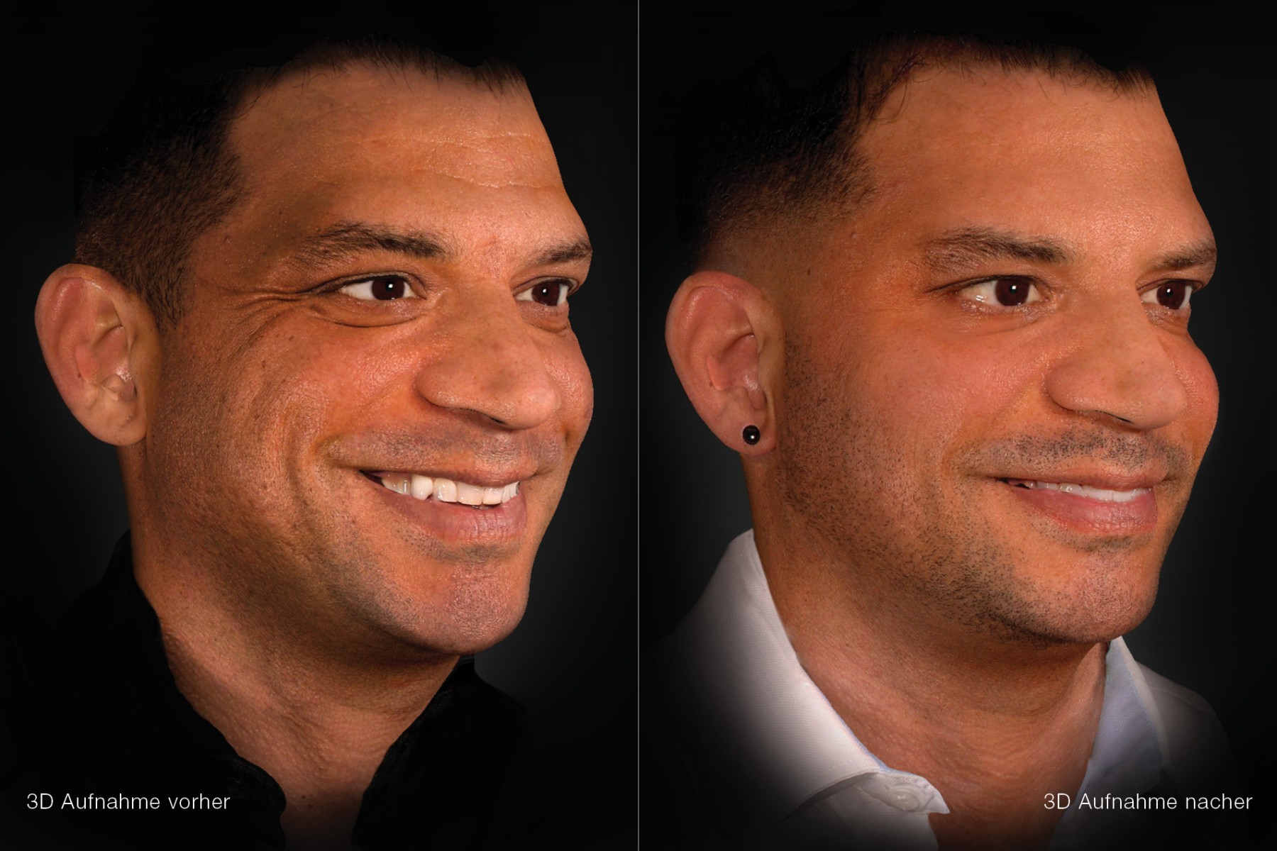 A smile says more than a thousand words – especially with Manuel. His skin is firmer, and there are visibly fewer dynamic wrinkles. These were caused both by expressive facial movements and a loss of skin firmness. His contours now appear more harmonious, and overall, Manuel looks more relaxed.