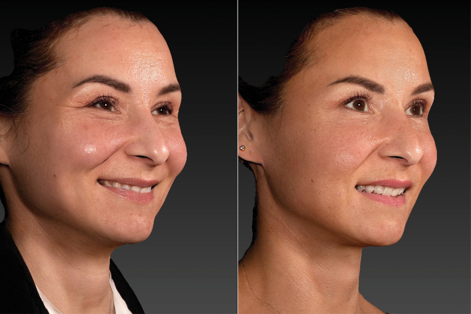 During the follow-up, new 3D images show Diana’s progress two months after treatment. Her face is visibly more defined, and her cheeks appear slimmer. The crow’s feet around her eyes have disappeared, her skin looks smoother, and fine lines are diminished.