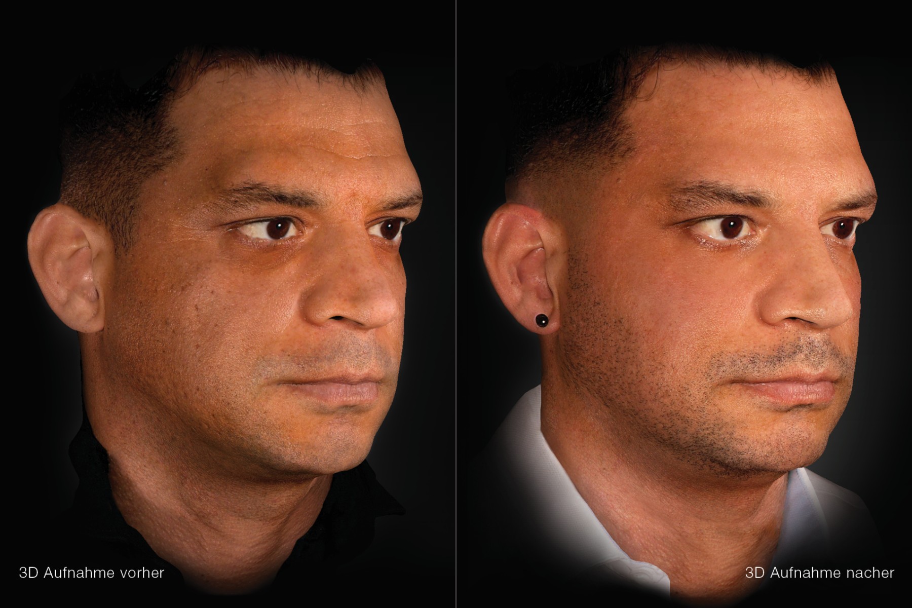 A smile says more than a thousand words – especially with Manuel. His skin is firmer, and there are visibly fewer dynamic wrinkles. These were caused both by expressive facial movements and a loss of skin firmness. His contours now appear more harmonious, and overall, Manuel looks more relaxed.
